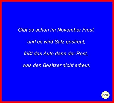 Text Gibt es schon im November Frostund es wird Salz gestreut, frißt das Auto dann der Rost, was den